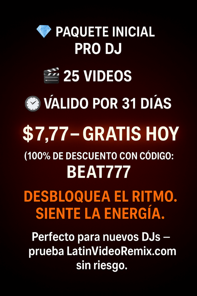 🎧 25 Videos | 31 Días | $7.77 → GRATIS Hoy con el Código: BEAT777 🚀 Para DJs que quieren subir de nivel Todo DJ profesional comienza con una buena biblioteca musical.Por eso LatinVideoRemix.com lanza el Pro DJ Starter Pack, una colección exclusiva de 25 remixes latinos en video de alta calidad, creada especialmente para […]