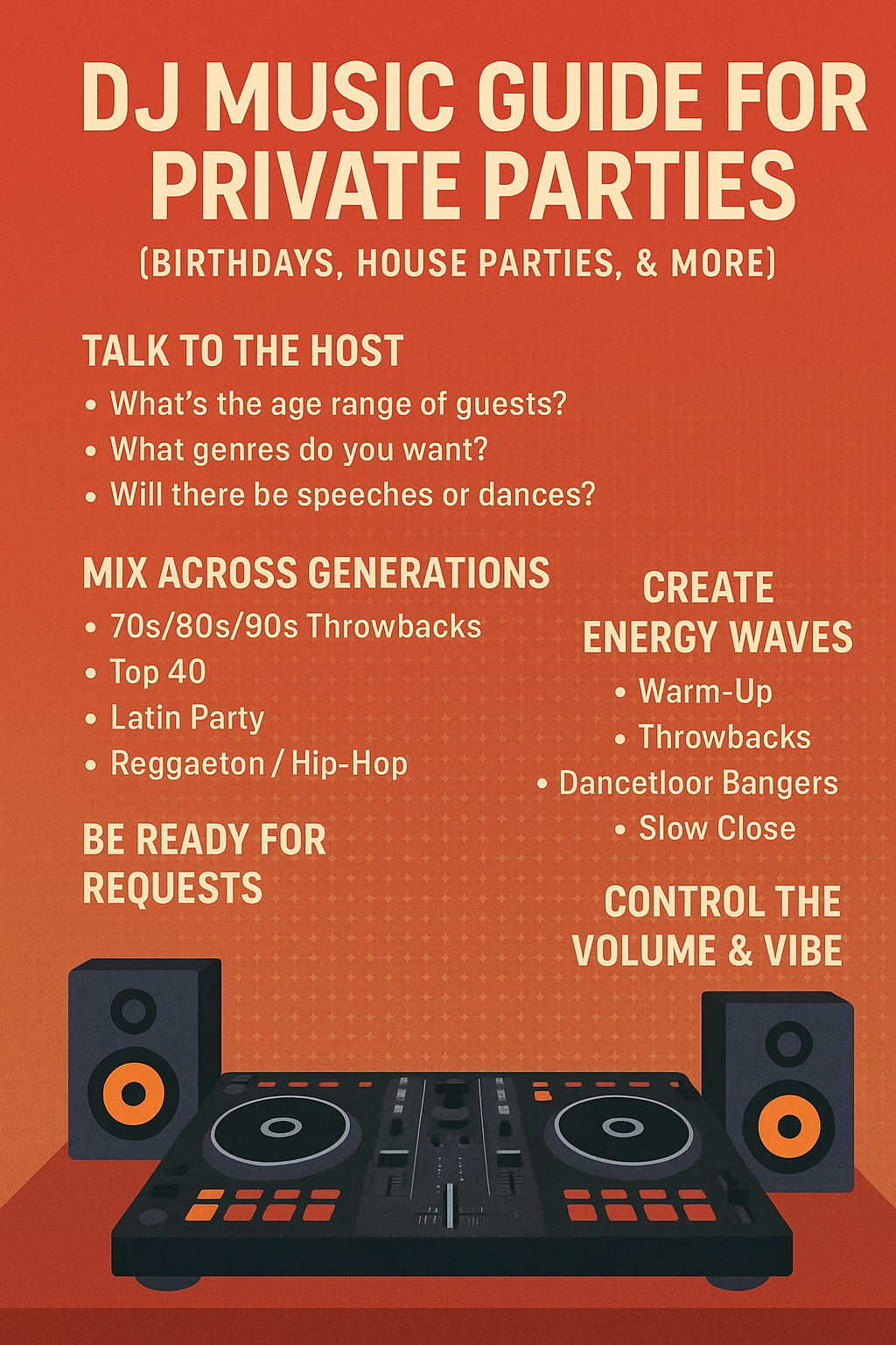Private parties are some of the most fun gigs for DJs—but also some of the most unpredictable. Every house party, birthday, or backyard celebration is different. The key to a great private party set is flexibility, preparation, and reading the room like a pro.