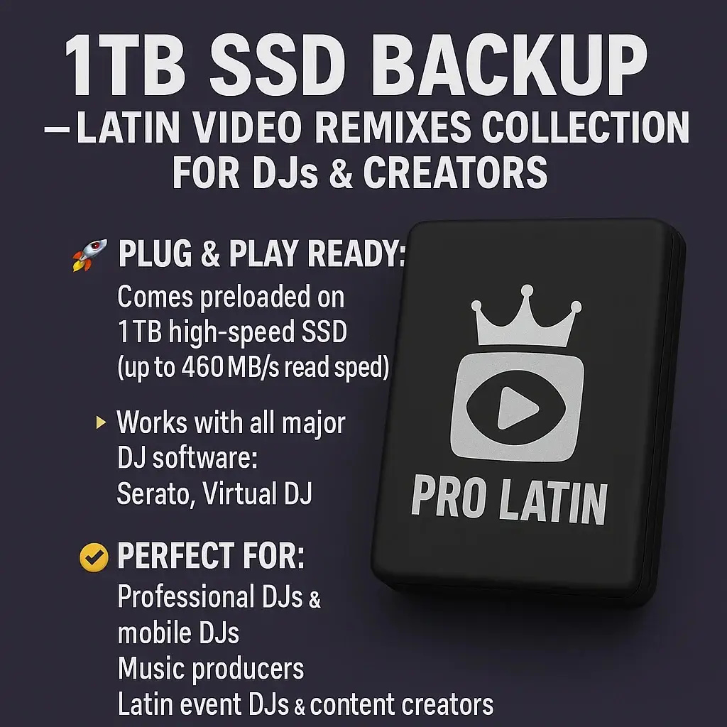 π½ 1TB SSD Backup β Latin Video Remixes Collection for DJs & Creators